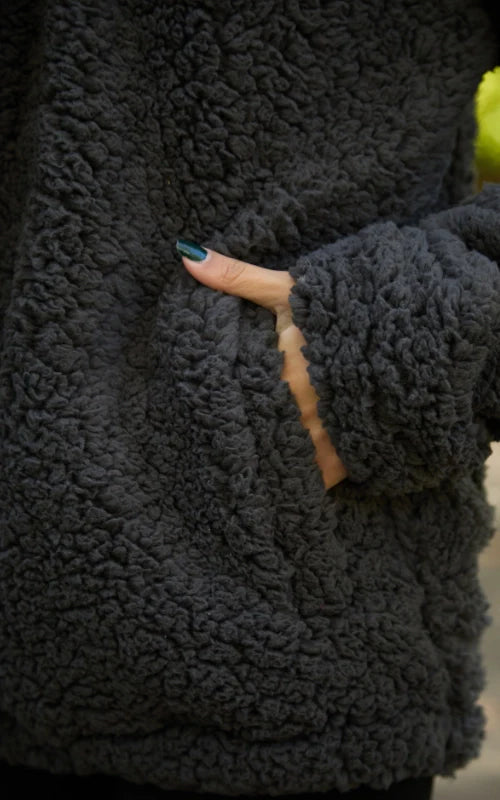 Dark Grey Sherpa Sweater with Deep Navy Lining