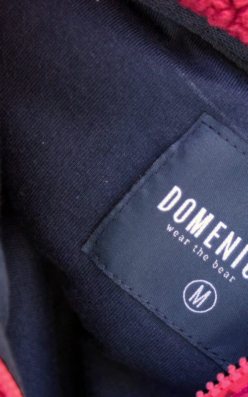 Effortless comfort meets timeless style. Crafted from plush burgundy sherpa fabric with a deep navy cotton lining, this jacket keeps you warm on chilly days while offering a classic, versatile look. Features include tone-on-tone chest-length zipper and practical pockets, blending functionality with understated design.